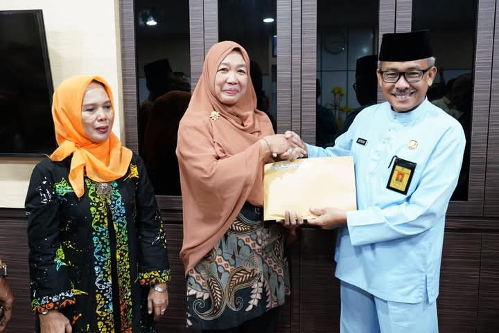 Diakhir acara Jefridin menyerahkan SK pensiun dan saguh hati kepada sembilan PNS yang purna tugas.(*)