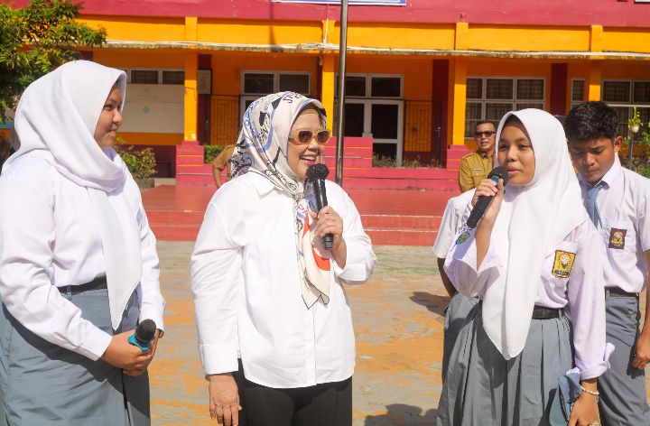 Ditengah sambutannya, Gubernur perempuan pertama di Kepri ini memanggil beberapa siswa untuk bertanya cita-cita mereka kedepan.
