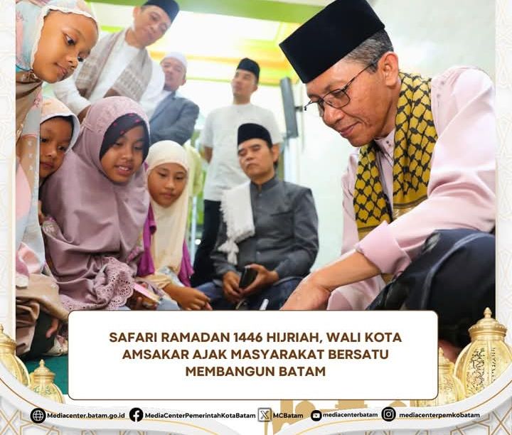 BATAM (Mk.com) – Wali Kota Batam, Amsakar Achmad, mengisi bulan suci Ramadan dengan mempererat silaturahmi bersama masyarakat, dalam agenda safari ramadan 1446 Hijriah Pemerintah Kota Batam. Silaturahmi diawali dengan buka puasa bersama masyarakat Kecamatan Sekupang, di Masjid Jami’ Abdullah, Kelurahan Tiban Baru, Selasa (4/3/2025). Momen ini dimanfaatkannya untuk mengajak warga memperkuat kebersamaan dan semangat gotong royong demi kemajuan Batam.