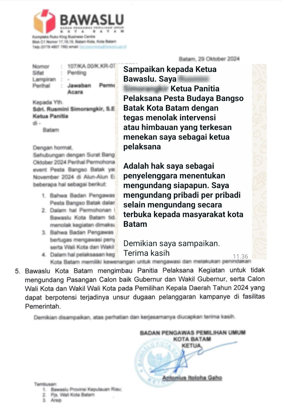 BATAM (Mk.com) – Tim Hukum dan Advokasi Pasangan Calon Gubernur dan Wakil Gubernur Kepulauan Riau Nomor Urut 2, Rudi-Rafiq, mengutuk keras dugaan pelanggaran netralitas dalam kegiatan yang diadakan di Alun-Alun Engku Putri, Batam Center, yang melibatkan Calon Gubernur Kepri Nomor Urut 1 dan Calon Wali Kota Batam Nomor Urut 2. Meskipun Badan Pengawas Pemilu (Bawaslu) Kota Batam sebelumnya telah memberikan peringatan agar tidak menghadirkan calon kepala daerah dalam acara tersebut, video yang beredar menunjukkan kehadiran para calon yang disambut oleh panitia di acara tersebut.