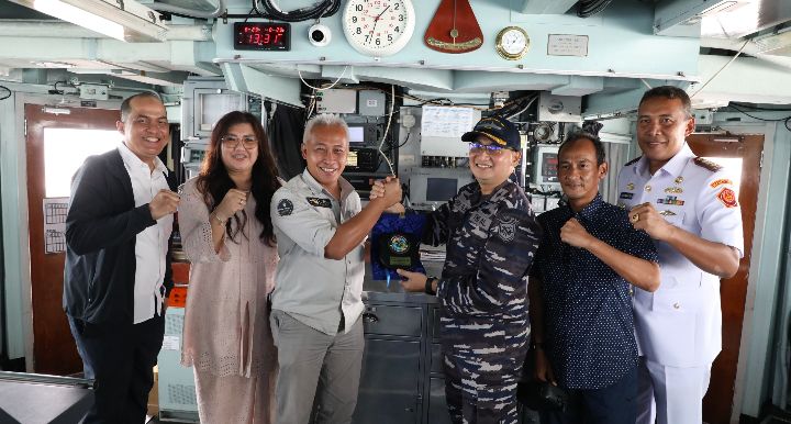 BATAM (Mk.com)_Direktur Badan Usaha Sistem Pengelolaan Air Minum BP Batam, Denny Tondano bersama rombongan menggelar pertemuan dalam rangka silaturahmi bersama Komandan KRI Bung Tomo 357, Letkol Laut (P) Dedi Gunawan Widyatmoko pada Kamis (29/8/2024) di Lounge Room KRI Bung Tomo 357 yang tengah sandar di Dermaga Utara Pelabuhan Batu Ampar.