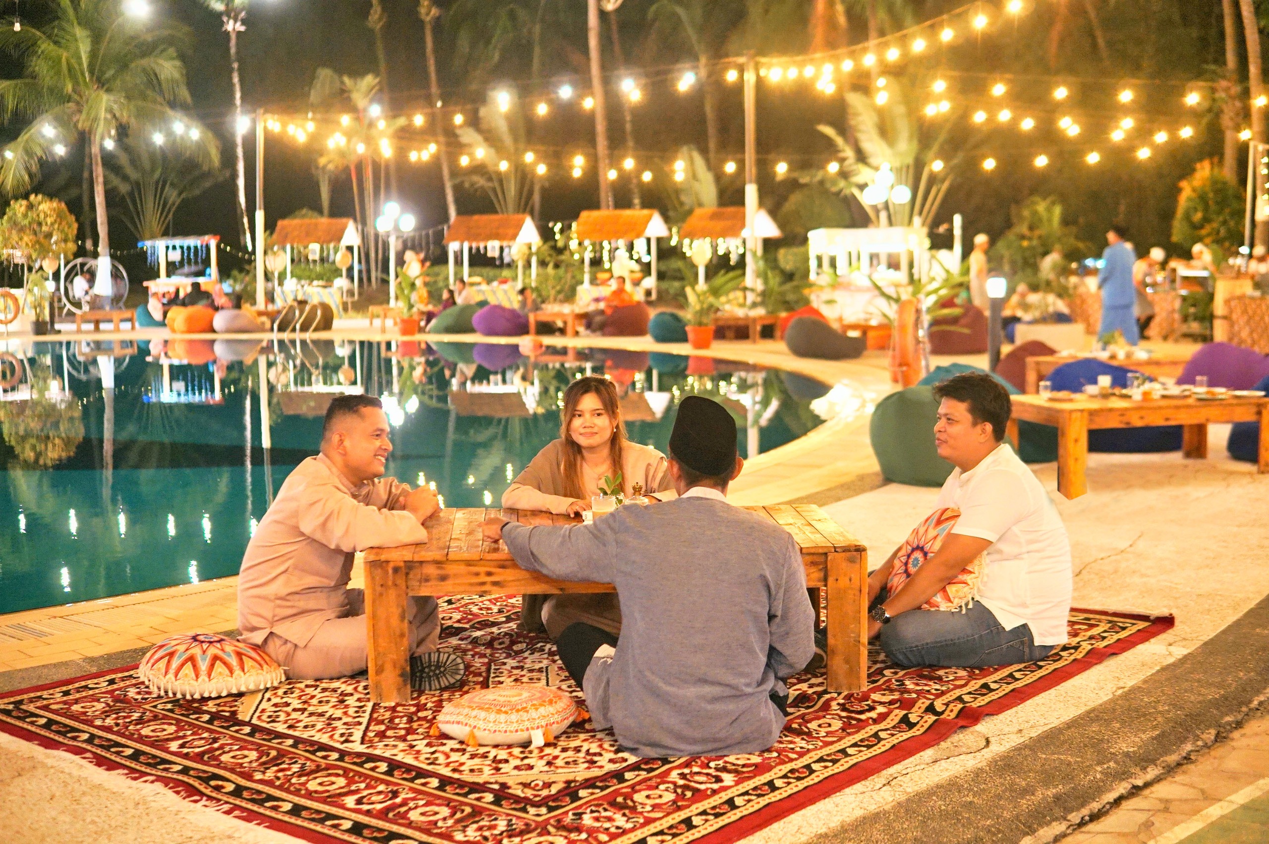Resort yang berlokasi di Waterfront City – Marina menyuguhkan suasana Ramadan dengan dekorasi Ramadan dan kedai-kedai tradisional yang sengaja dibuat untuk menambah semarak saat berbuka puasa bersama