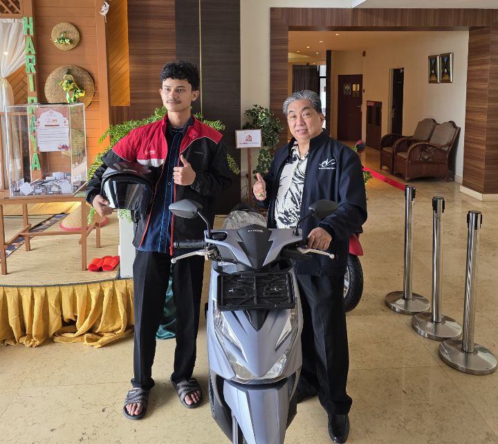 ” Sesuai komitmen kami, hari ini Selasa 1 April 2024 M , kami melaksanakan pencabutan Undian dari program Iftar Ramadhan yang Hadia utama berupa : 1 unit sepeda motor Honda Scoopy, serta 1 unit sepeda motor Honda Beat” papar Andy fong.