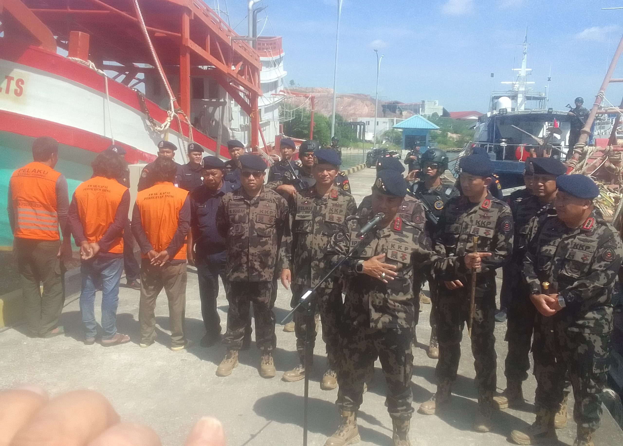 Direktur Jenderal Pengawasan Sumber Daya Kelautan dan Perikanan, Pung Nugroho Saksono atau yang akrab disapa Ipunk, meninjau langsung kapal hasil tangkapan tersebut di Batam, Kepulauan Riau, Kamis (6/11/2025).