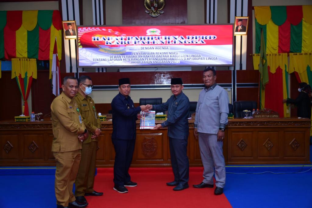 LINGGA (Mk.com)_Dewan Perwakilan Rakyat Daerah (DPRD) Kabupaten Lingga mengelar paripurna Penyampaian Rekomendasi terhadap Laporan Keterangan Pertanggungjawaban (LKPJ) Bupati akhir tahun anggaran 2021, Senin (06/06/2022). Pada paripurna ini terdapat beberapa catatan terhadap penilain kinerja eksekutif.