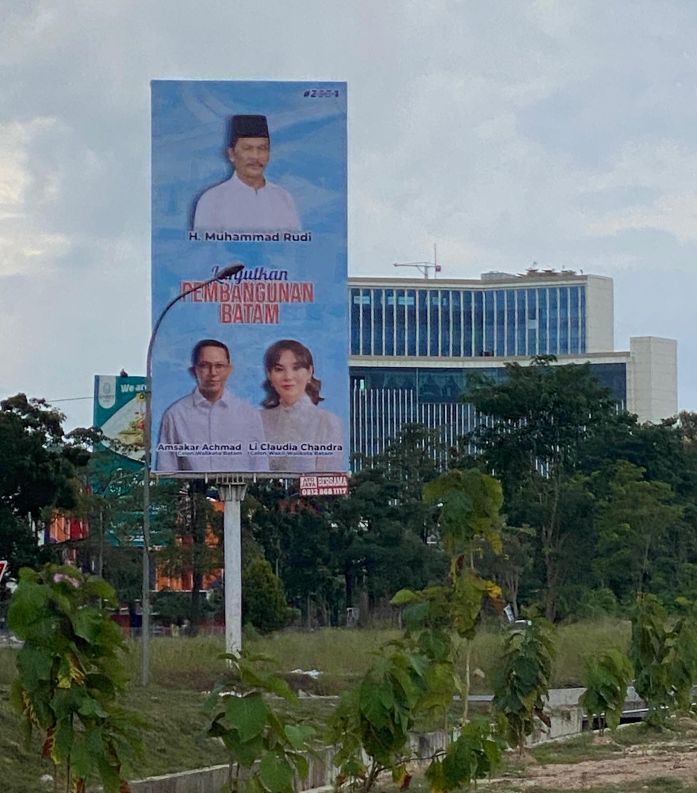“Pak Rudi calon gubernurnya, Pak Amsakar dan Li Claudia calon walikota dan wakil walikotanya. Sudah pas itu untuk Kepri dan Batam lebih maju,” ujar salah satu warga yang melintas di lokasi spanduk.