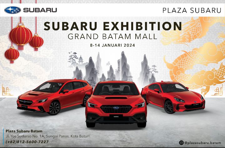 BATAM (MK.com) – Hari ini (8/1), Subaru Indonesia dan Plaza Subaru Batam memulai kemeriahan perayaan Imlek 2024 dengan mengadakan Subaru Exhibition di Grand Batam Mall dengan program Imlek dan memperkenalkan daftar harga area Batam (Plat V) terbaru. Program Imlek tersebut khusus untuk pembelian Subaru WRX dan Subaru WRX Wagon, dimana customer akan mendapatkan angpao yang berisi beragam hadiah menarik. Acara ini sendiri berlangsung selama satu minggu di atrium Grand Batam Mall pada 8-14 Januari 2024.