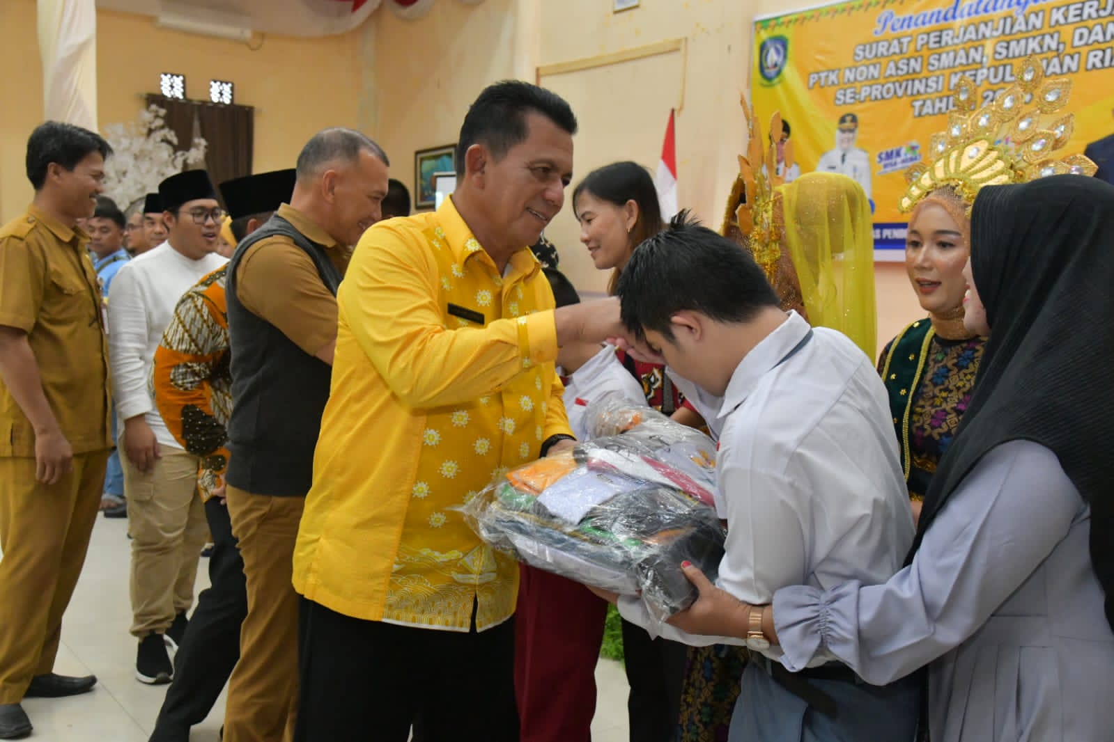 RANAI (Mk.com) – Sebanyak 316 orang Pendidik dan Tenaga Kependidikan (PTK) Non ASN SMAN, SMKN, dan SLBN se-Kabupaten Natuna melanjutkan pengabdiannya di Provinsi Kepulauan Riau ditandai dengan penandatanganan Surat Perjanjian Kerja (SPK) Tahun 2024 secara simbolis yang disaksikan langsung oleh Gubernur Kepri Ansar Ahmad di Gedung Sri Srindit, Ranai, Kabupaten Natuna, Selasa, (16/1).