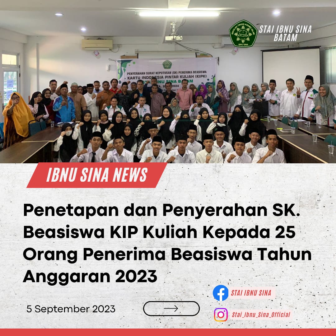 Tahun ini penerima Beasiswa KIP STAI Ibnu Sina Batam memperoleh penambahan kuota dari 15 orang menjadi 25 orang yang tersebar di Prodi PAI, HESY dan PIAUD STAI Ibnu Sina Batam.