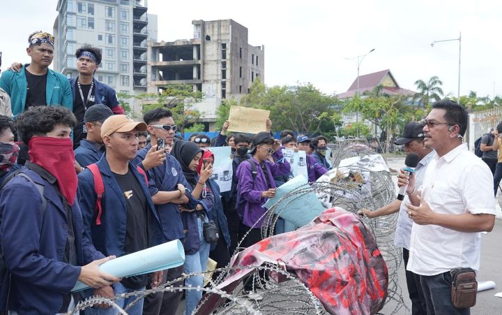 BATAM (Mk.com) _ Badan Pengusahaan (BP) Batam melalui Direktur Pelayanan Terpadu Satu Pintu, Harlas Buana menemui puluhan mahasiswa yang menggelar aksi unjuk rasa di gerbang masuk BP Batam, Senin (23/12/2024).