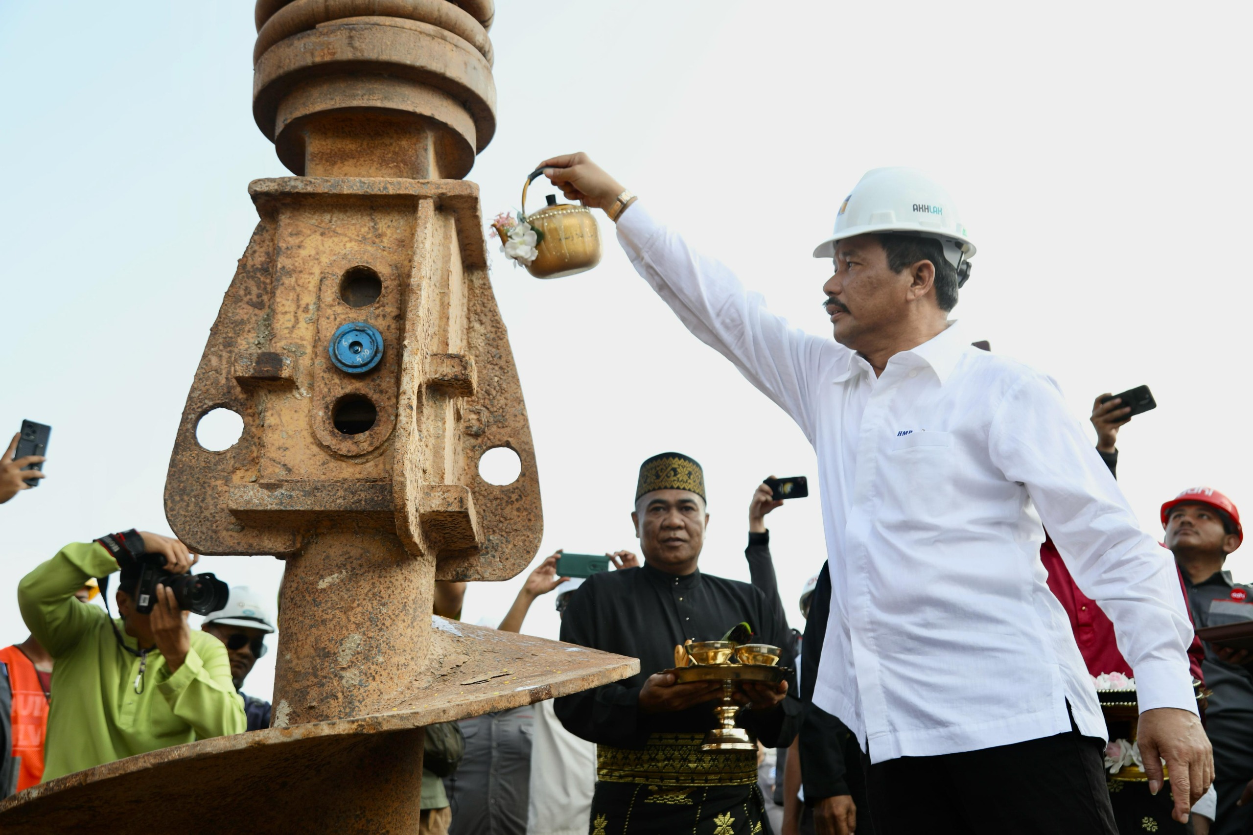 BATAM (Mk.com)_Kepala BP Batam Muhammad Rudi lakukan Ground Breaking Pemasangan tiang pancang pertama Pembangunan Flyover Sei Ladi.