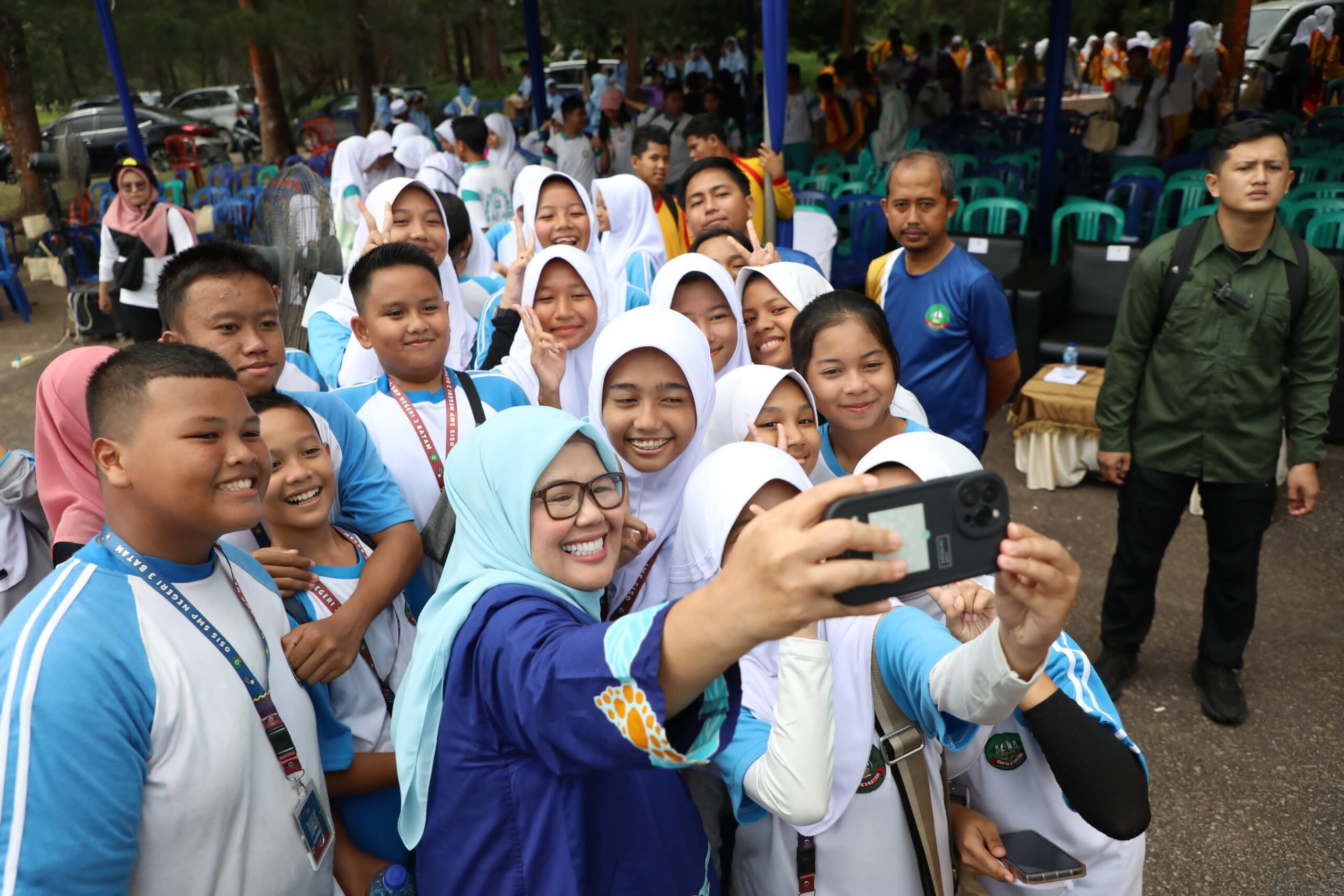 Wakil Gubernur Kepulauan Riau sekaligus Ketua Tim Penggerak Pemberdayaan Kesejahteraan Keluarga (TP PKK) Kota Batam, Marlin Agustina mengucapkan “Selamat Hari Anak Nasional” pada acara yang diadakan di Pantai Marina, Kelurahan Tanjung Riau, Kecamatan Sekupang. Rabu (24/7/2024).